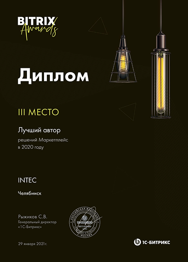 1 место Лидер продаж «1С-Битрикс: Управление сайтом» 2021 года в Уральском федеральном округе